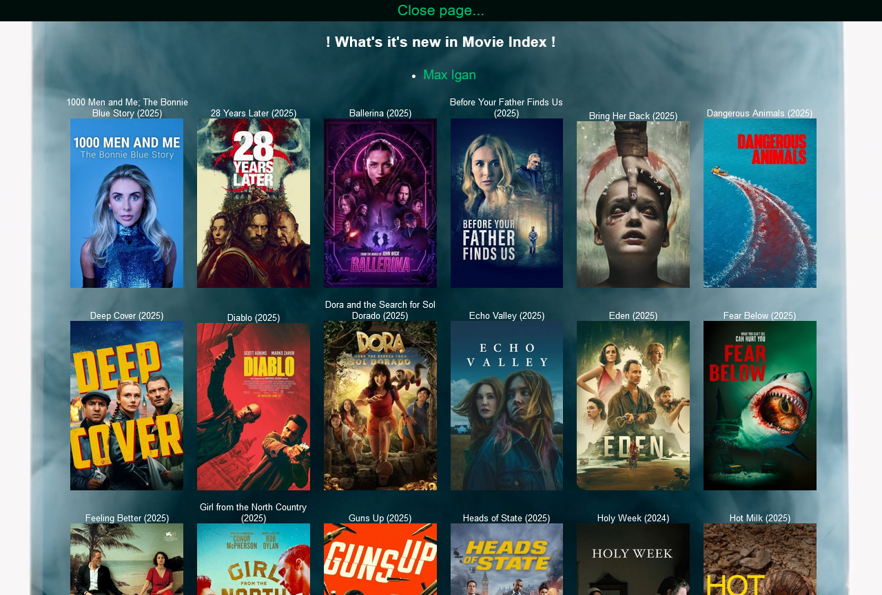 Movie Index is your personal movie database creator! Organize and share video files from your computer within a VPN, private network, or local network with family and friends.